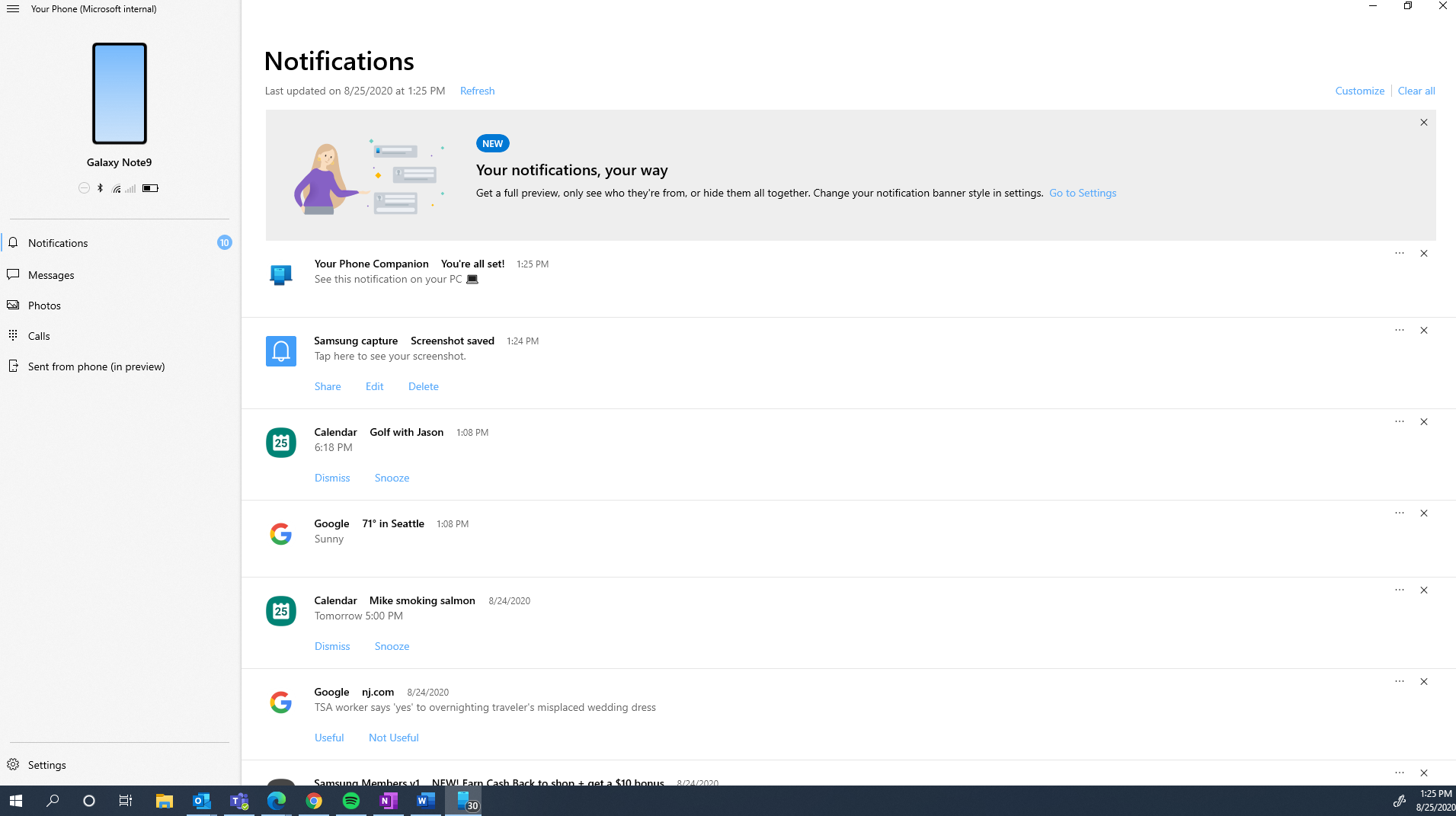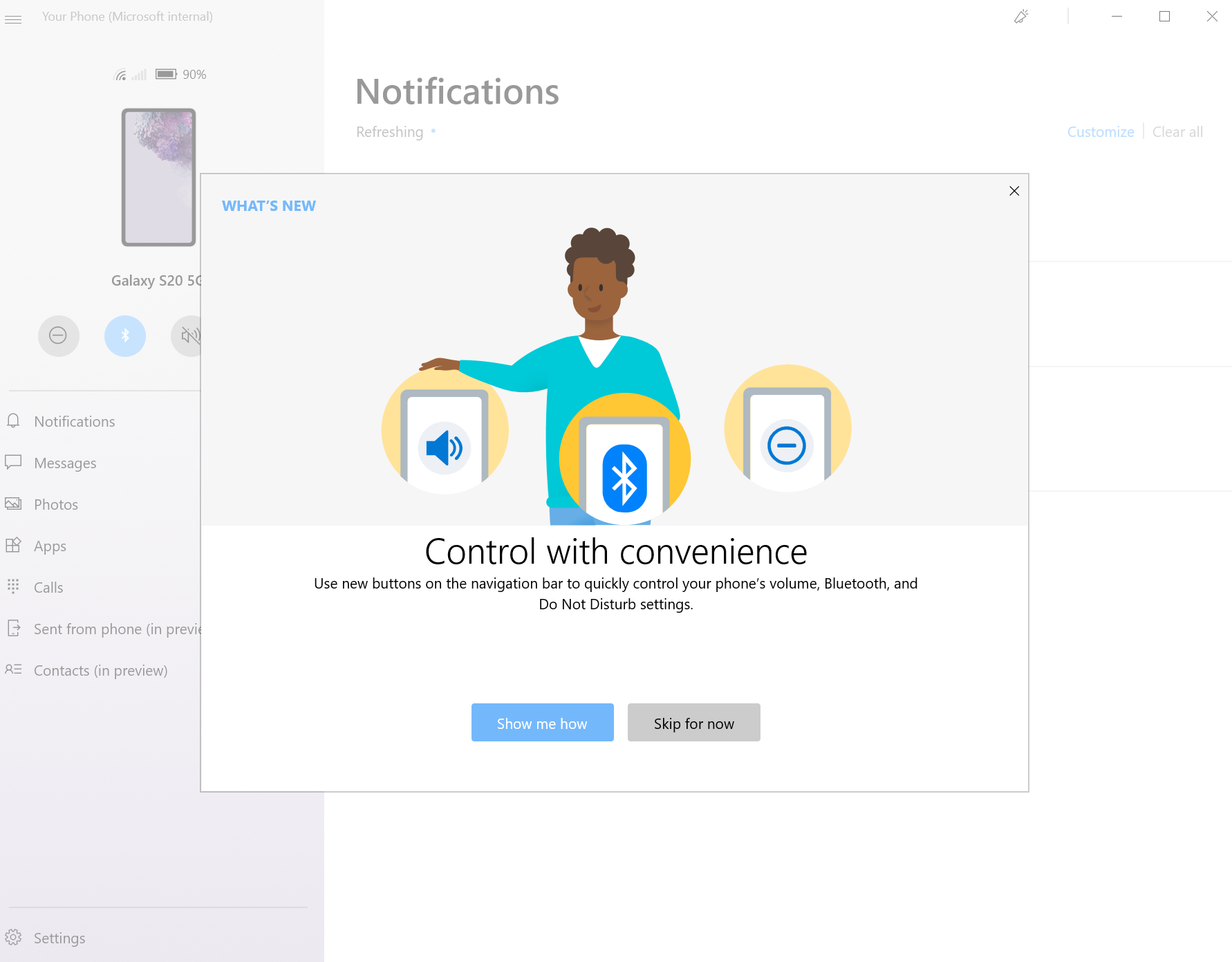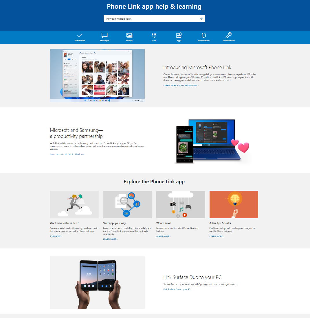 As lead writer for the Your Phone app, I owned the entire content ecosystem — UX copy, tips, What's New, support content, store release notes, and marketing. The app bridged Android/Samsung devices with Windows PCs, but a fragmented device landscape (two different companion apps, Samsung's tight confidentiality requirements, and fast feature cycles) made alignment and consistency a constant challenge.