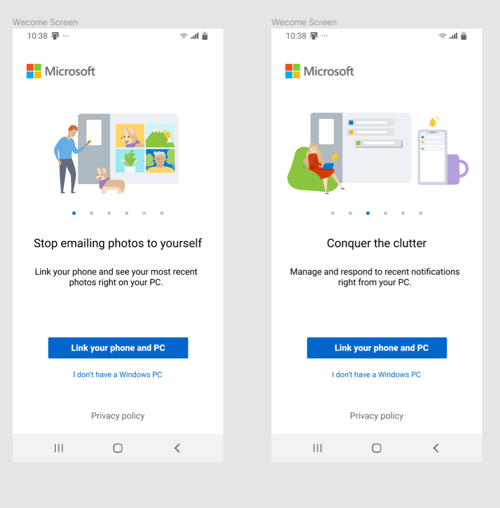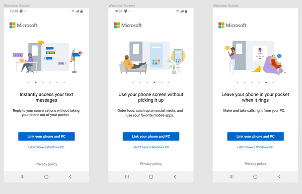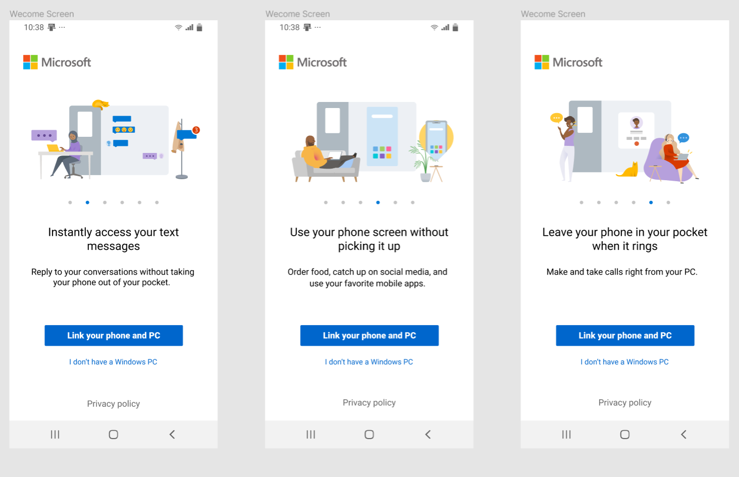 The original Link to Windows landing screen offered little value prop before asking users to sign in — a steep drop-off point.